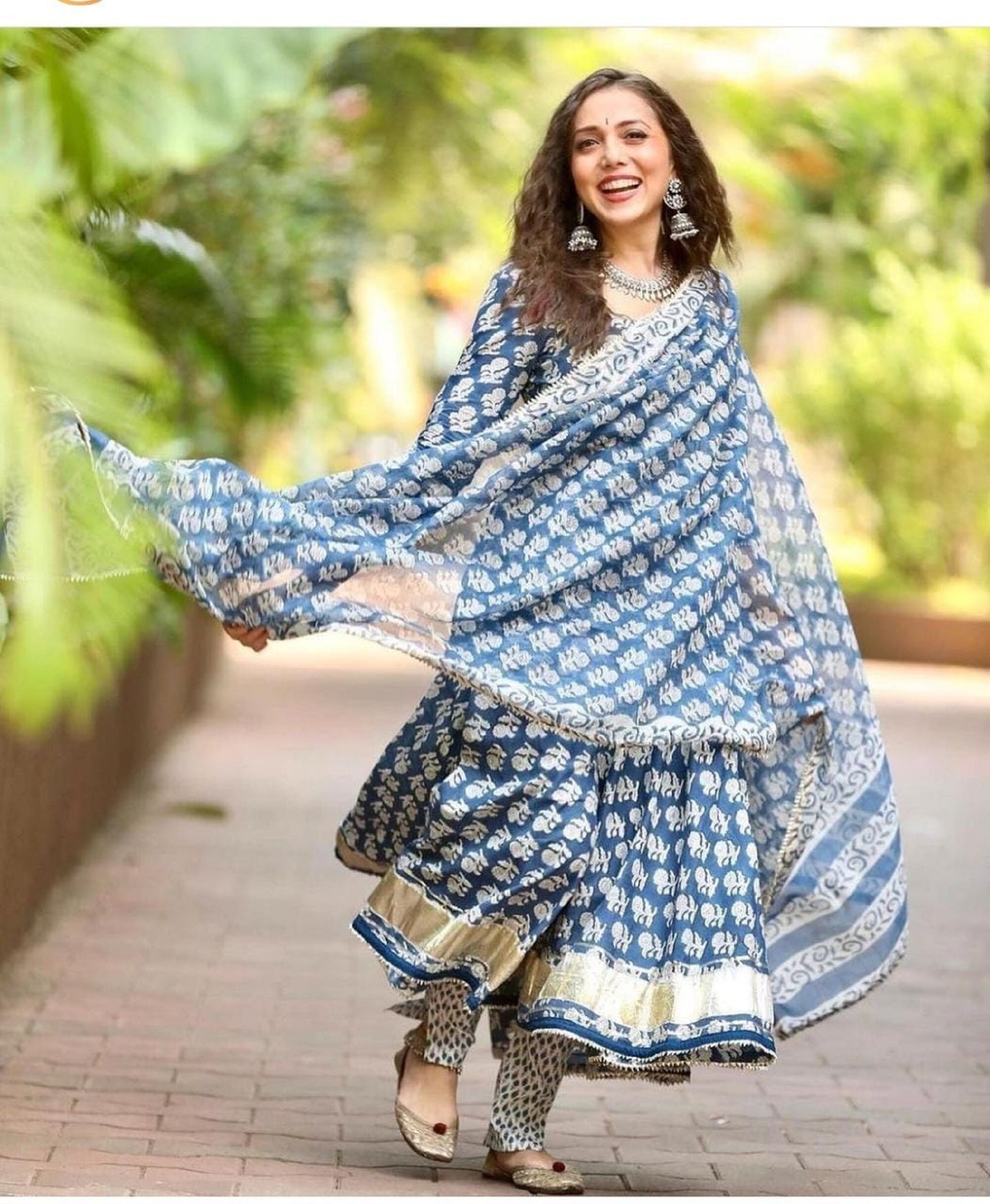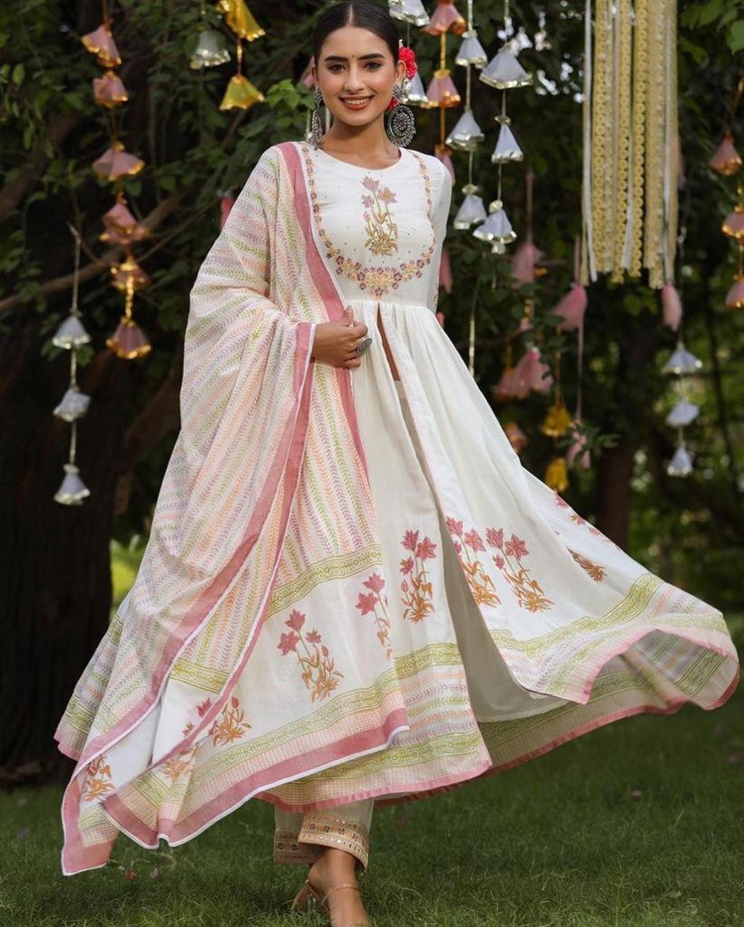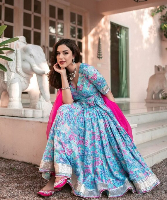 Indian Ethnic Cotton Anarkali Gown With Pant For Women Etsy Ireland